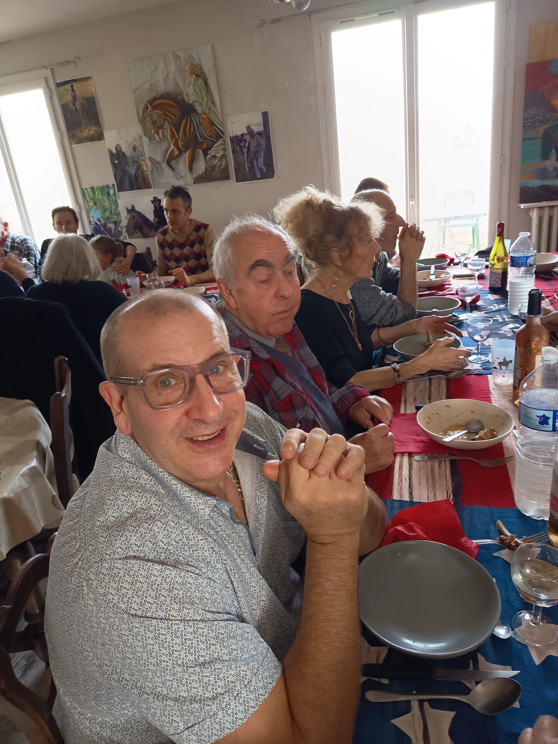 REPAS chez Michel et Jean Pierre( après avoir ramassé 317 balles de foin