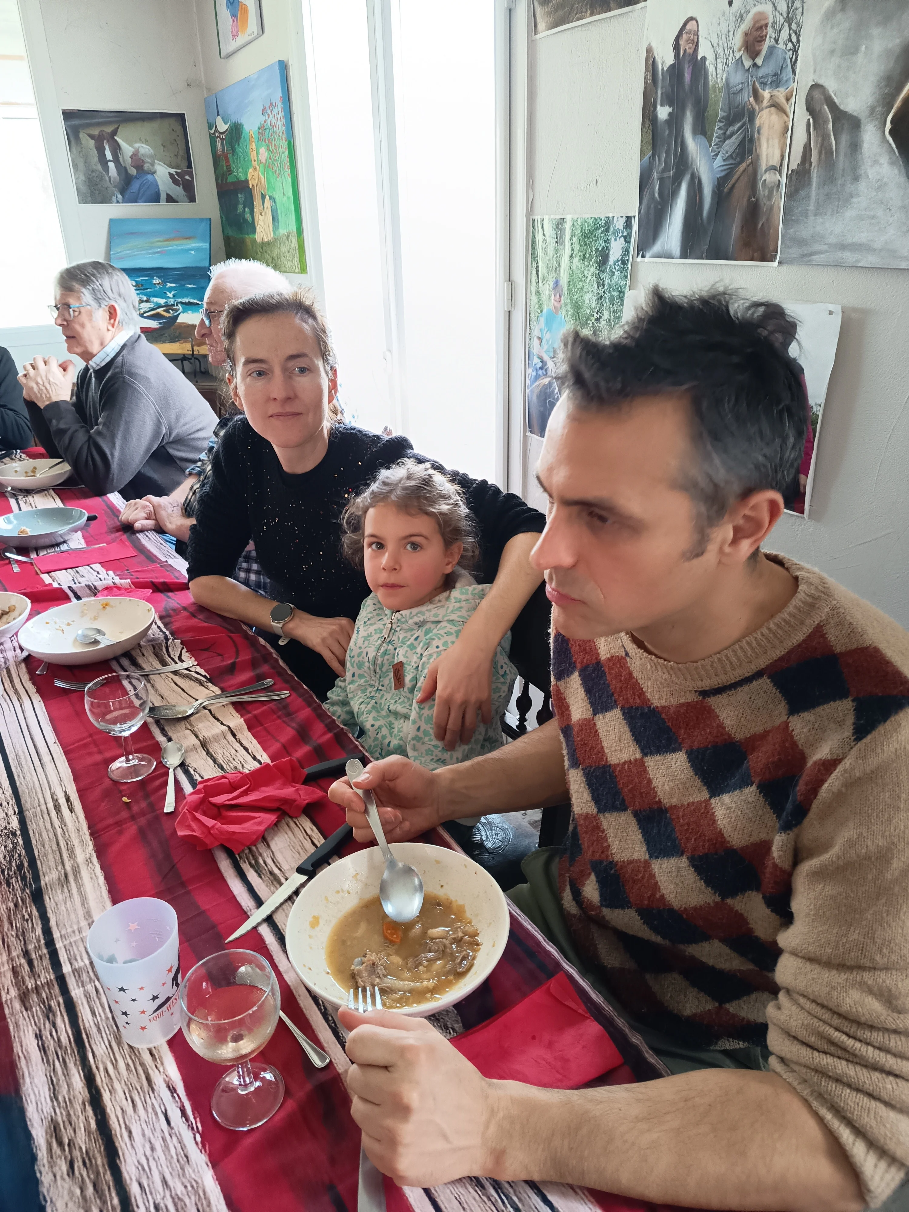 REPAS chez Michel et Jean Pierre( après avoir ramassé 317 balles de foin
